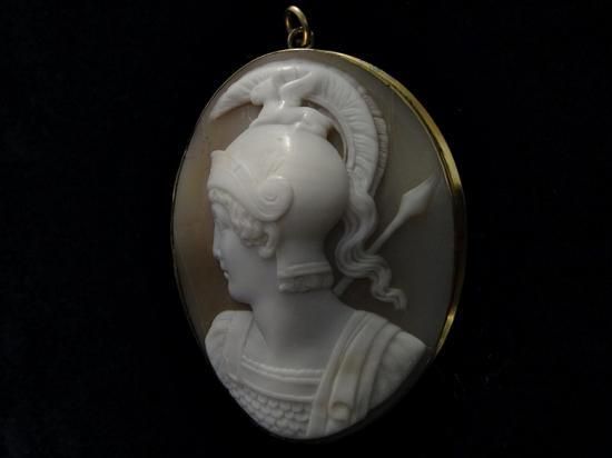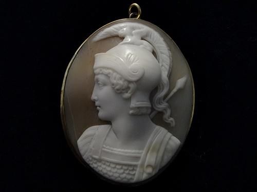 アンティークジュエリー K14 軍神アレス 大きなシェルカメオのペンダント アンティークカメオ