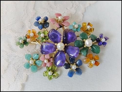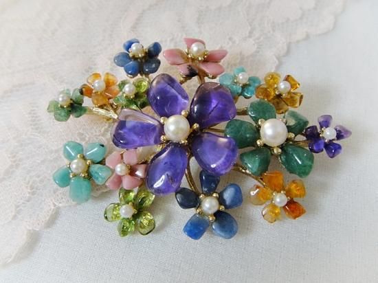 クレメンツ Krementz エナメルと真珠 勿忘草のブローチ レース枠