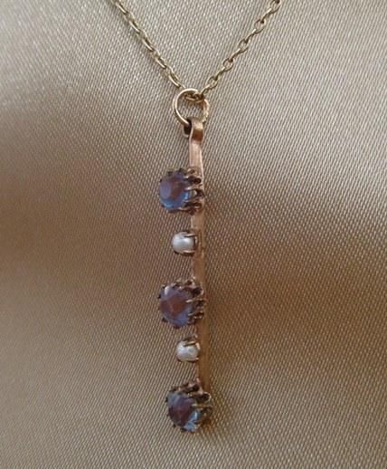ドイツ製アンティーク 大粒アイリスガラスとマルカジットのミル打ちペンダントトップ/チャーム