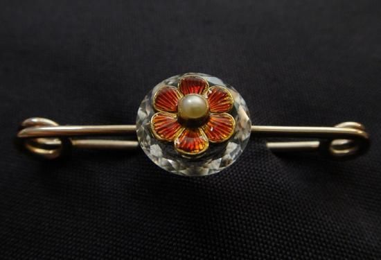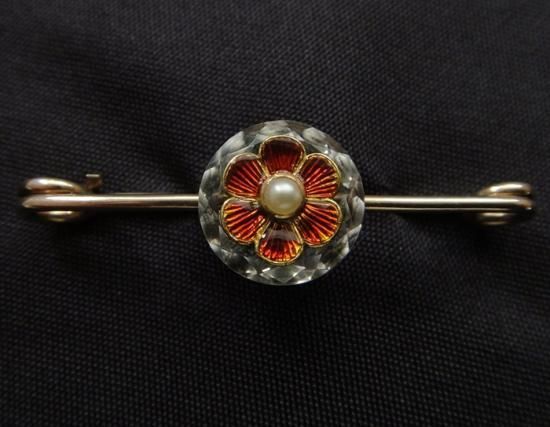 ギロッシュエナメルと水晶のブローチ ハーフパール