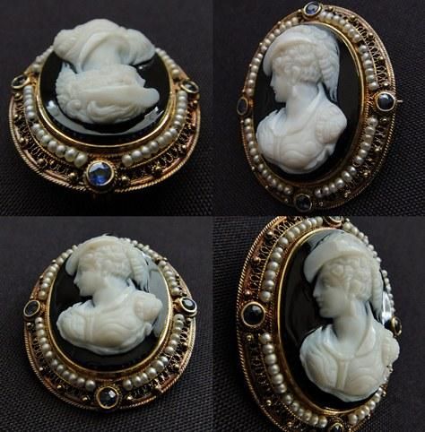 アンティーク■ギリシャ神話 女神ヘラ ハードストーンカメオ オニキス ハーフパール