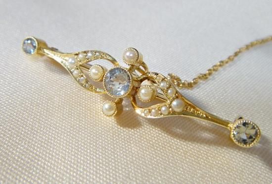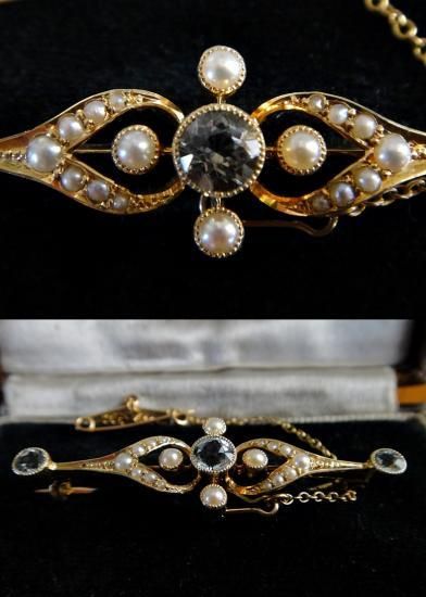 アンティーク エドワーディアン K14刻印 ダイヤモンド44石 リボンブローチ&ペントップ