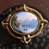 アンティーク 手描き スイスエナメル 大きさあり 湖畔からアルプス ペンダント、ブローチ(要修理)