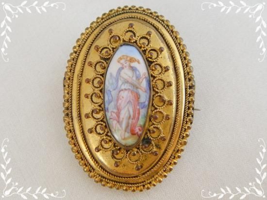 アンティーク 手彫り 希少 マザーオブパールのバッカンテ 酒神バッカスの巫女 ブローチ 彫金