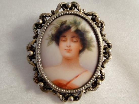 アンティーク 手彫り 希少 マザーオブパールのバッカンテ 酒神バッカスの巫女 ブローチ 彫金