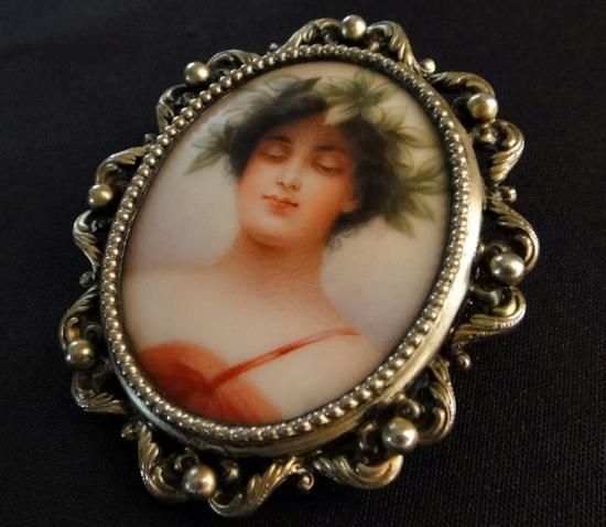アンティーク アールデコ デコレディ シルエット ハンドぺインドエナメルのミニアチュールペンダントトップ
