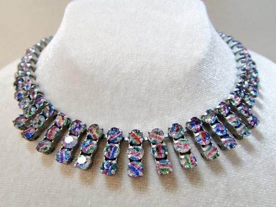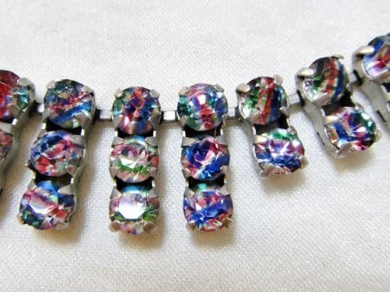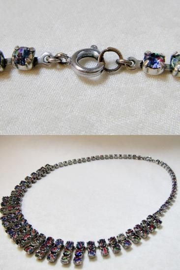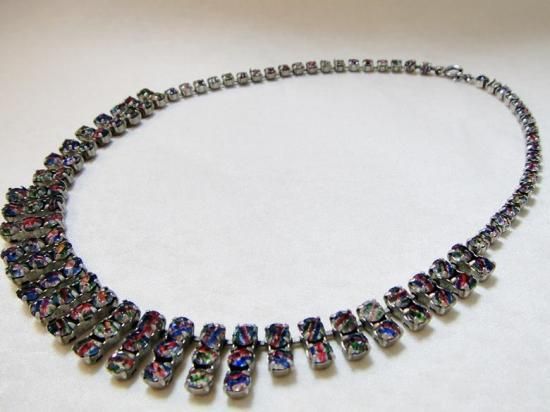 ドイツ製アンティーク 大粒アイリスガラスとマルカジットのミル打ちペンダントトップ/チャーム