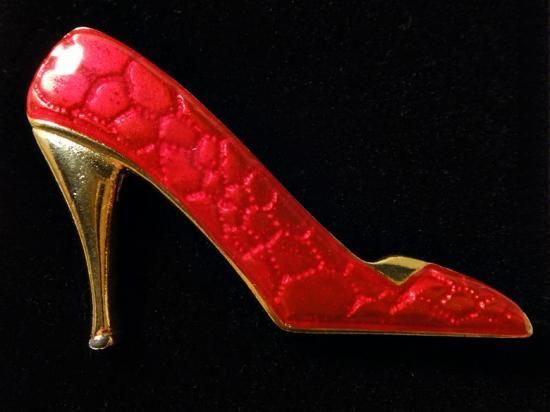 鮮やかな赤いエナメルのハイヒールのブローチ。