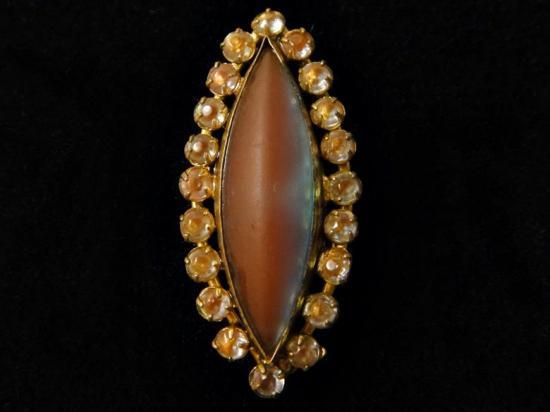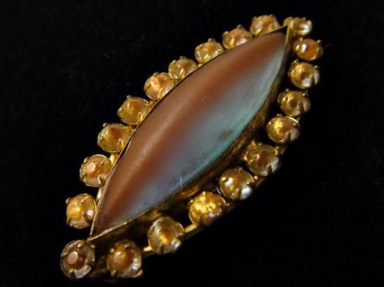 ドイツ製アンティーク 大粒アイリスガラスとマルカジットのミル打ちペンダントトップ/チャーム