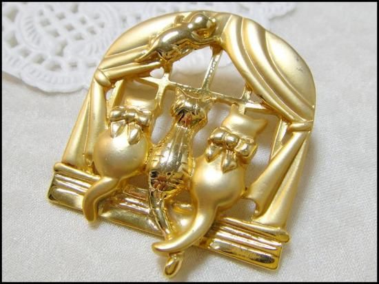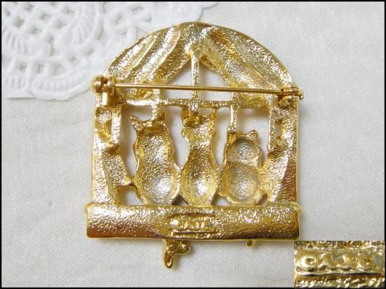 AJC 窓辺の猫達のブローチ ヴィンテージ