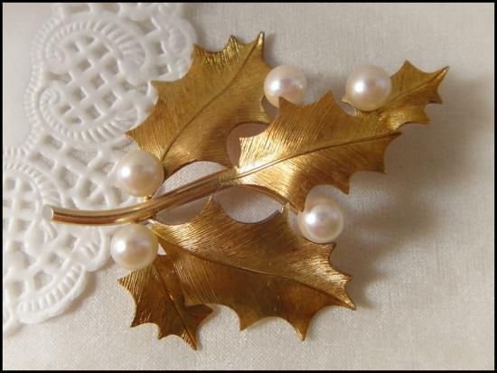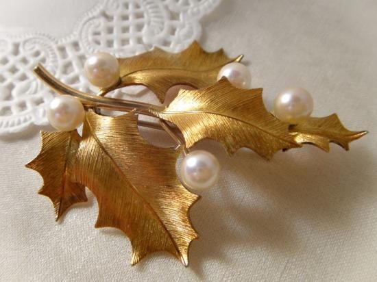 ヴィンテージ Krementz刻印 クレメンツ 14KGF 翡翠の葡萄のブローチ 状態良好 アメリカ購入品 本物保証
