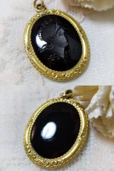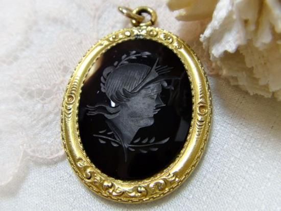 アンティーク アールデコ デコレディ シルエット ハンドぺインドエナメルのミニアチュールペンダントトップ
