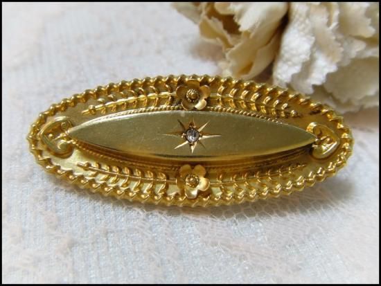 アンティーク エドワーディアン K14刻印 ダイヤモンド44石 リボンブローチ&ペントップ