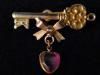 ヴィンテージ 鍵とハート、リボンのブローチ ハート型ペースト