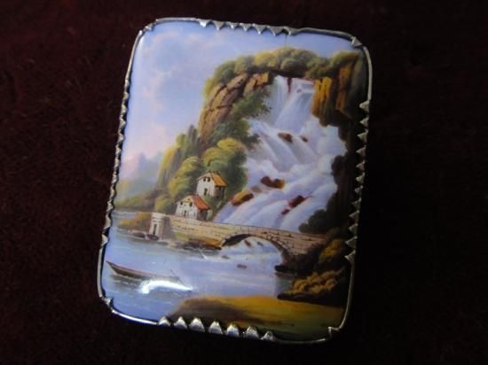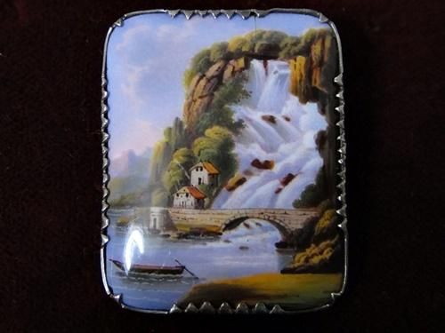アンティーク スイスエナメル エナメル細密画 風景のブローチ