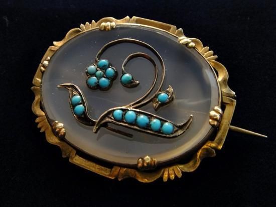 アンティーク■K15 アクアマリンとハーフパールのブローチ BOX付